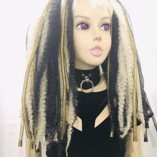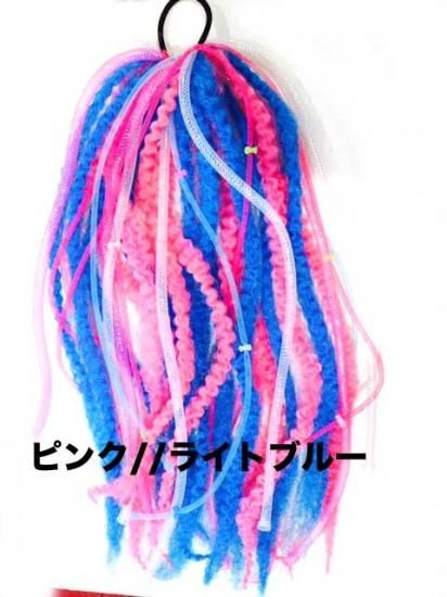 ふわふわボリュームのアフロヘアと細めのメッシュチューブをゴム付きにまとめました