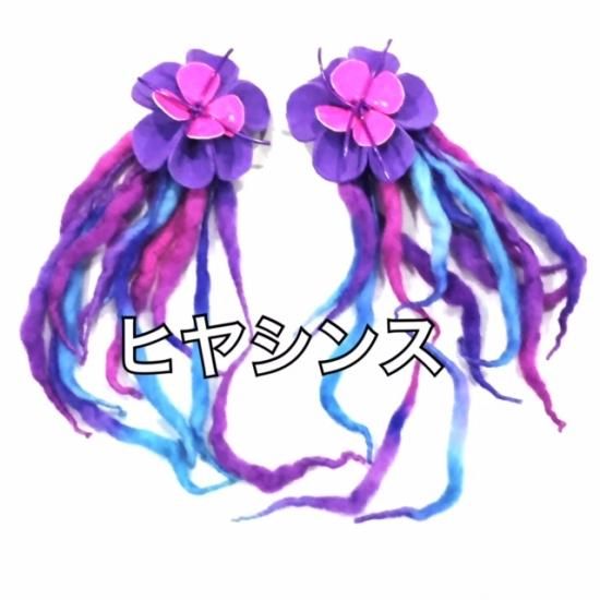 フラワーからファンシーウールヤーンがくらげのように生えてます