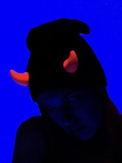 好みの方向でかぶって下さい。角はブラックライトで鮮やかに光ります(黒除く)