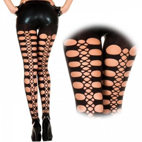 バックシーム部分に大きめのホールと編み目が施されたクールなタイツ