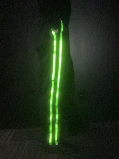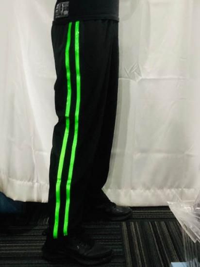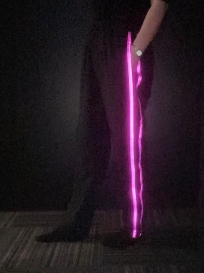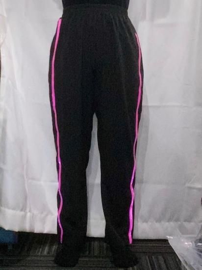 トレーニングジャージパンツのように2本線で先細りシルエット