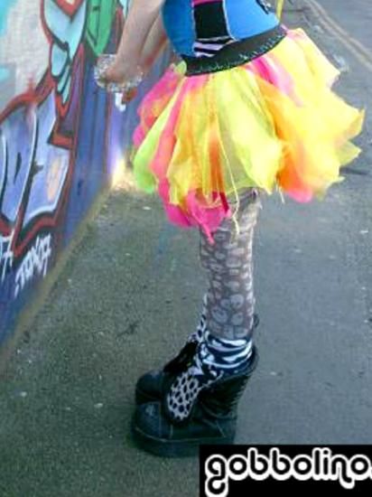 ネットチュールに短冊状の生地が重なっています。中は動きで透けて見えます
